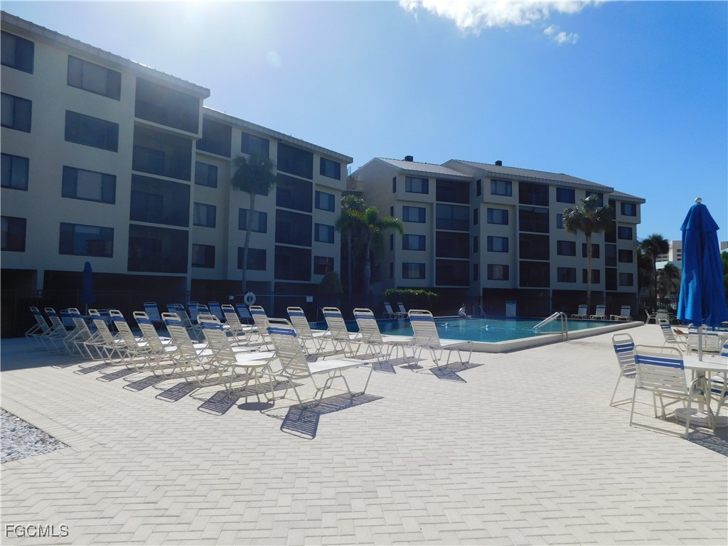 Welcome to the Santa Maria, whether you are looking for a winter retreat, or an investor looking for rental income this jewel is for you. Santa Maria is a rarity allowing owners to reside full-time in their unit or to rent it at their discretion. A wonderful boating & beach community just across Estero Blvd. from the wide, white sand beach of south Estero Island, near Santini Plaza with shopping and dining, as well as Fish Tale Marina. Easy mainland access via Bonita Beach Rd, brings you into Bonita & Naples for an abundance of shopping, dining and much more. This one bedroom, one and half bath condo has a full-size washer dryer in unit, full kitchen has granite counter tops and all the appliances. Primary bathroom has been updated with a walk in shower. For boaters this condo comes with a deeded boat slip with Direct Gulf access through Big Carlos Pass on the south tip of Island. One of the largest swimming pools on the Island, Hot-tub, expansive pool and sundeck. New Tiki hut with BBQ grills and a covered cabana for family gatherings. All the seawalls and docks have been redone. Nightly rentals are allowed. This condo has a ground level storage room.